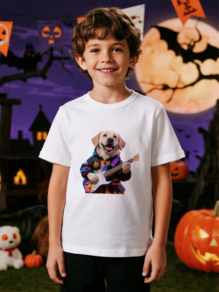 Balabala Unisex Halloween 3D Labrador Chơi áo thun guitar