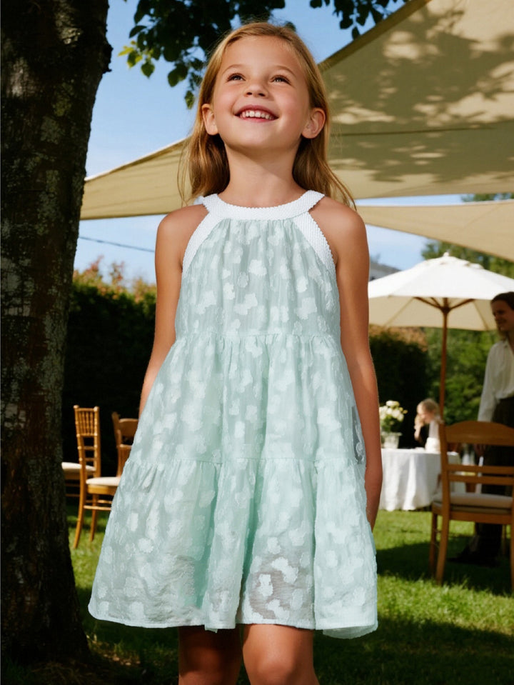 Cotton Polyester Brocade pha trộn qua vải Jacquard vải, quá trình vải màu xanh lá cây màu xanh lá cây đan xen với một bông hoa nhỏ, toàn bộ váy là một chút màu xanh lá cây làm mới vào mùa hè, đường viền cổ áo bằng cách va chạm với các trang web có kết cấu màu be để làm phong phú sự phân cấp thị giác, để nâng cao cảm giác của toàn bộ chiếc váy; 3. Thiết kế váy cổ A-Type, phong cách kỳ nghỉ rất khuyến khích nó, cộng với lớp lót bông mềm, thân thiện với da và không buộc mọi người!